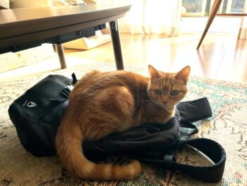 社員のカバンが気に入ったようで打ち合わせ中はずっとここにいてくれました。