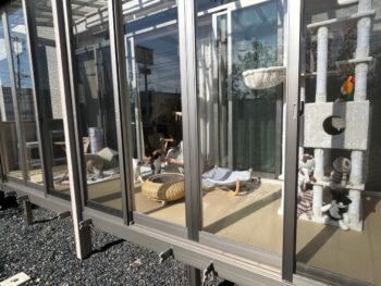 一昨年、サンルームの工事をさせていただきねこちゃんの癒しの空間が完成しました。