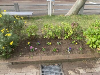 ペンタスの空いたスペースにはパンジーの苗を植えました。