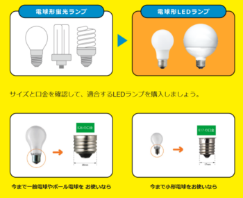 サイズと口金を確認して、適合するLEDランプをご購入ください。