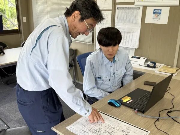 現場事務所では、図面や書類などで分からないところを先輩が優しく教えてくれます。